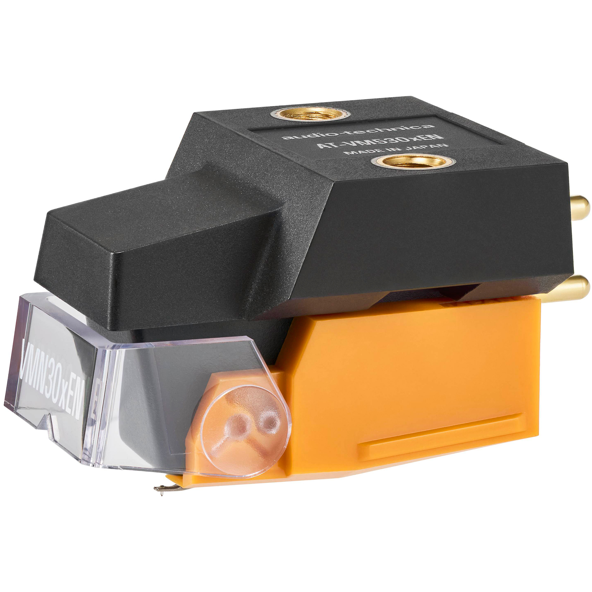 Все картриджи VMx оснащены генератором с паратороидальной конструкцией катушек: две катушки на канал, расположенные одна за другой, для значительного повышения эффективности. Центральная экранирующая пластина разделяет левый и правый каналы, снижая перекрестные помехи и обеспечивая четкое стереоизображение. В качестве материала для катушек используется улучшенный провод PCUHD® (Pure Copper Ultra High Drawability), что обеспечивает более насыщенное и детализированное воспроизведение звука. Количество витков катушки было незначительно уменьшено для улучшения переходных характеристик, позволяя картриджу быстрее реагировать на изменения сигнала, что обеспечивает кристально чистое звучание с исключительным ощущением непосредственной близости к музыкальному материалу. Игла AT-VM530xEN из цельного алмаза (Nude) с эллиптической заточкой 0.3 x 0.7 мм снижает массу вибрационной системы, обеспечивая улучшенную частотную характеристику и меньшие искажения по сравнению с иглами с приклеенным алмазом (Bonded).