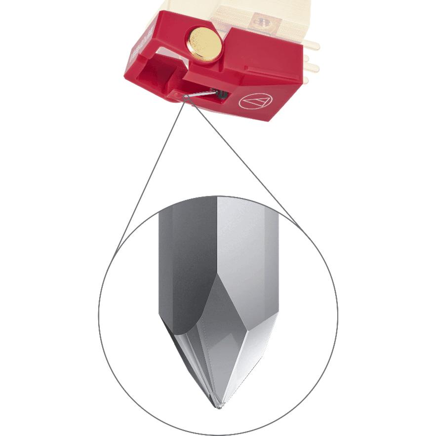 Модель оснащена алмазной иглой с заточкой MicroLine, форма которой максимально приближена к геометрии режущего инструмента, применяемого при изготовлении мастер-дисков. Такая заточка обеспечивает расширенную площадь контакта с канавкой пластинки, позволяя более точно считывать высокочастотную информацию и снижать уровень искажений, особенно на внутренних дорожках.
