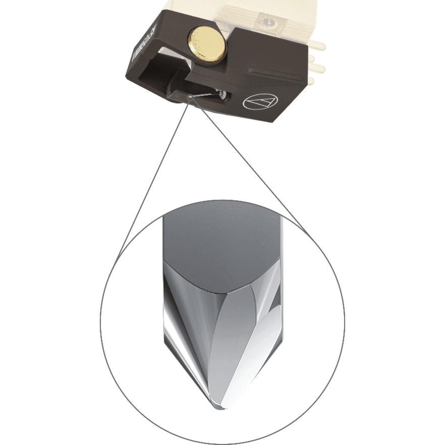 Модель оснащена алмазной иглой с заточкой MicroLine, форма которой повторяет профиль режущего резца, используемого при создании мастер-дисков. Такая геометрия позволяет игле более точно следовать форме канавки, улучшая передачу высокочастотных деталей, снижая уровень искажений и уменьшая износ виниловых пластинок при длительном использовании.