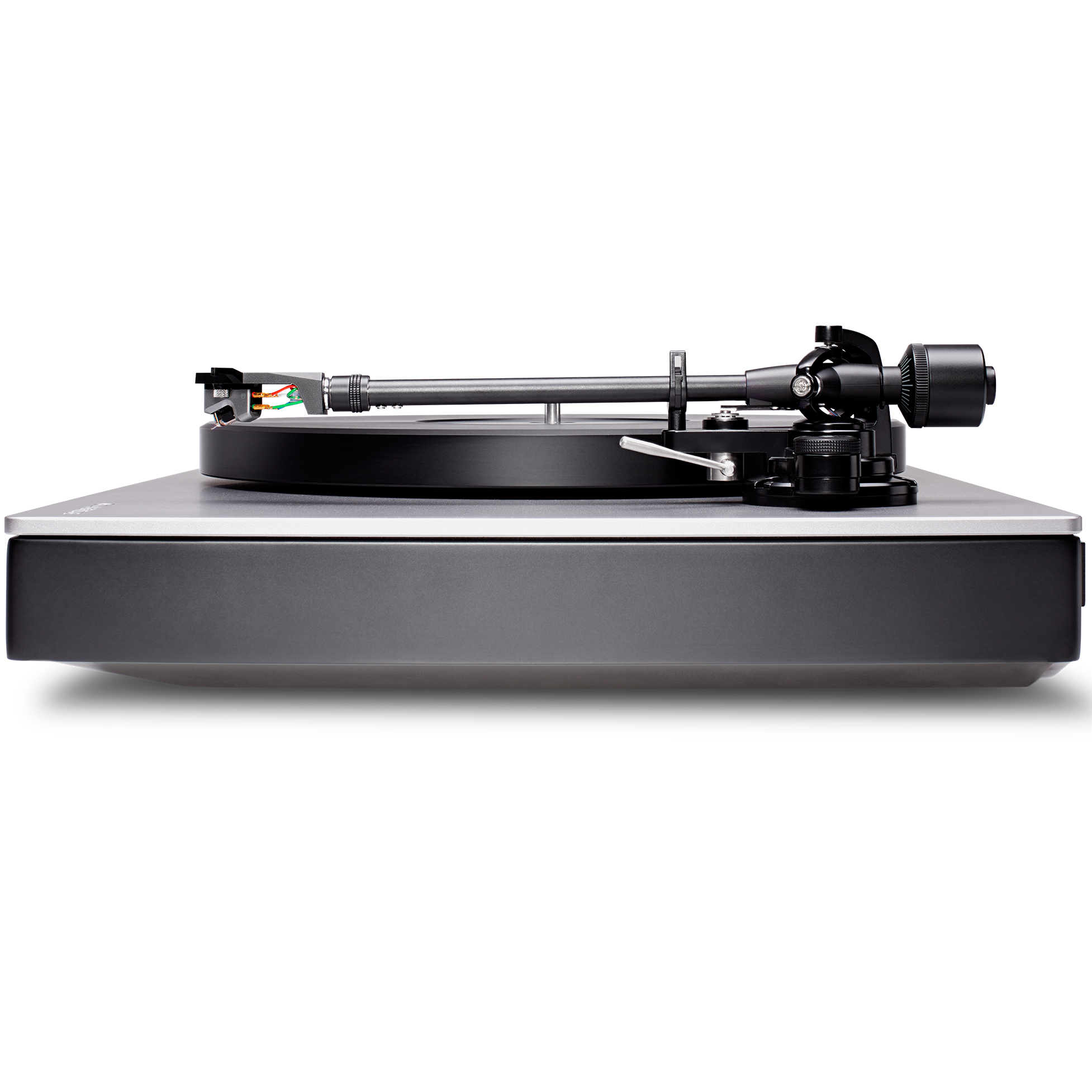 Прямой монолитный алюминиевый тонарм составляет одно целое с шеллом и оснащается предустановленным на фабрике MC-картриджем с высоким выходом и открытым корпусом, благодаря чему минимизируются нежелательные вибрации и резонансы. Игла получила эллиптический профиль и крепится к алюминиевому иглодержателю. Проигрыватель Cambridge Audio ALVA TT обладает встроенным фонокорректором, благодаря чему его можно подключать к линейному входу любого интегрального усилителя (на тыльной стороне корпуса присутствуют два RCA-разъема). Конструктив фонокорректора базируется на схемах, примененных в таких фирменных предусилителях, как Alva Solo и Alva Duo.