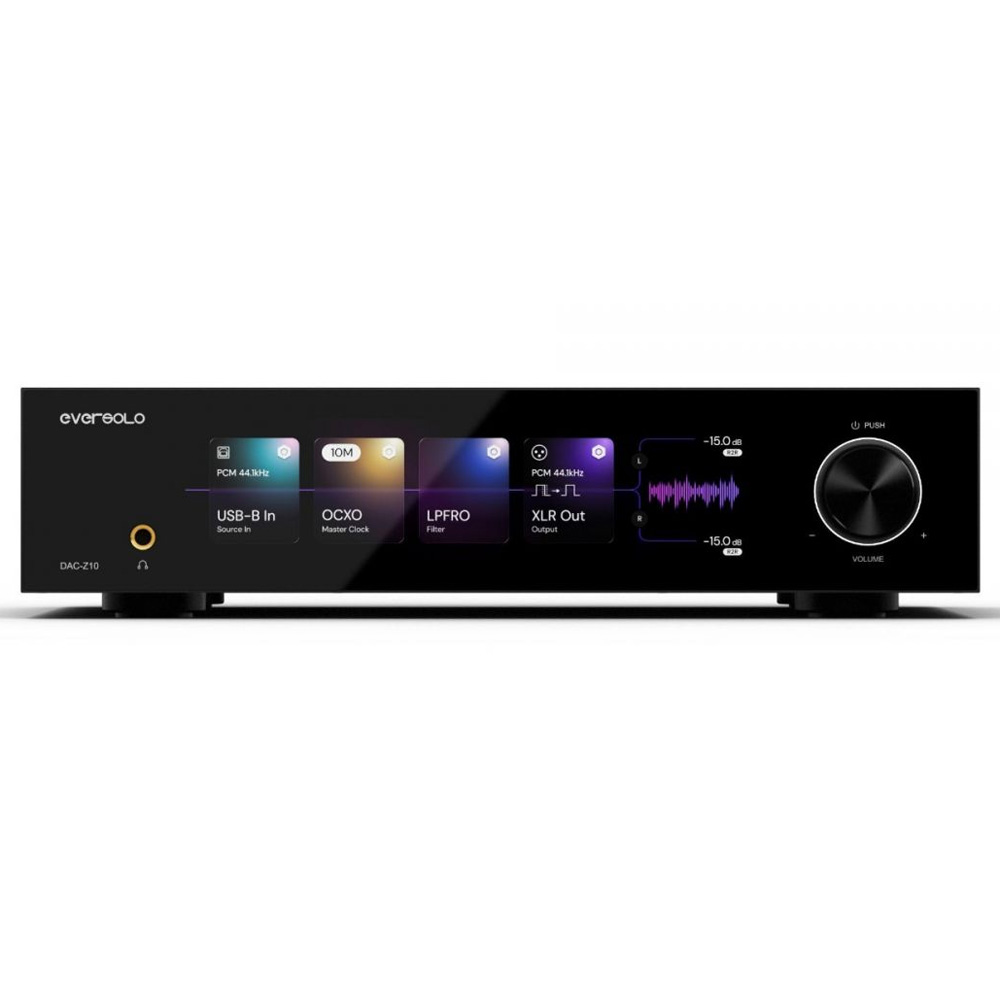 На фронтальной панели установлен 8,8-дюймовый IPS-сенсорный экран с регулируемыми визуализаторами и поддержкой управления через мобильное приложение Eversolo Control. DAC-Z10 демонстрирует, что современный ЦАП может быть не только высокоточным инструментом, но и эстетичным центром цифровой аудиосистемы.