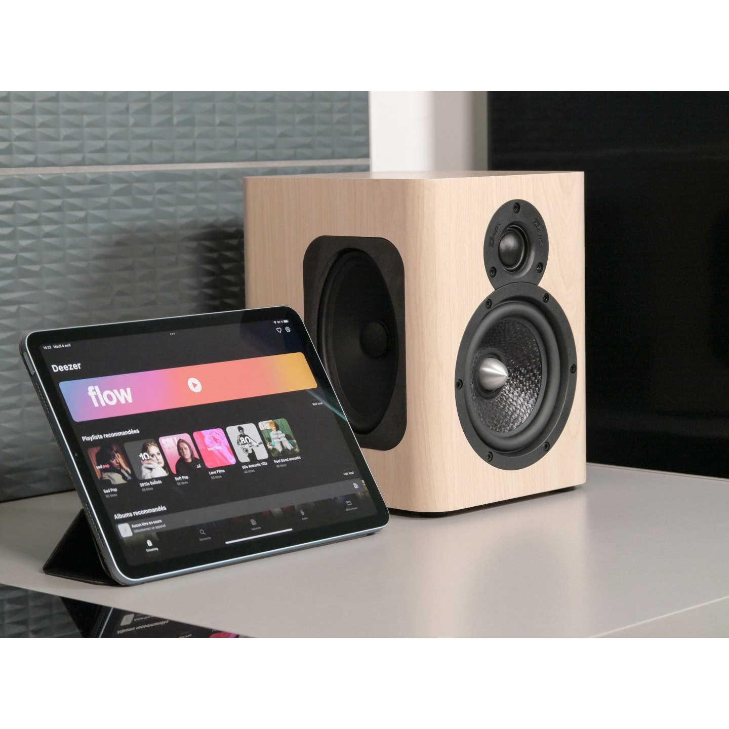 Octavio Maestro оснащена 13-сантиметровым кевларовым средне/низкочастотным динамиком от Davis Acoustics, обеспечивающим точное воспроизведение звука. Кевларовая мембрана, отличающаяся легкостью и жесткостью, оптимизирует воспроизведение средних и низких частот. Система также включает 2,5-сантиметровый шелковый купольный твитер Davis Acoustics, отвечающий за четкое воспроизведение высоких частот. Два пассивных радиатора обеспечивают расширенный диапазон низких частот, исключая проблемы, характерные для традиционных корпусов с фазоинвертором.