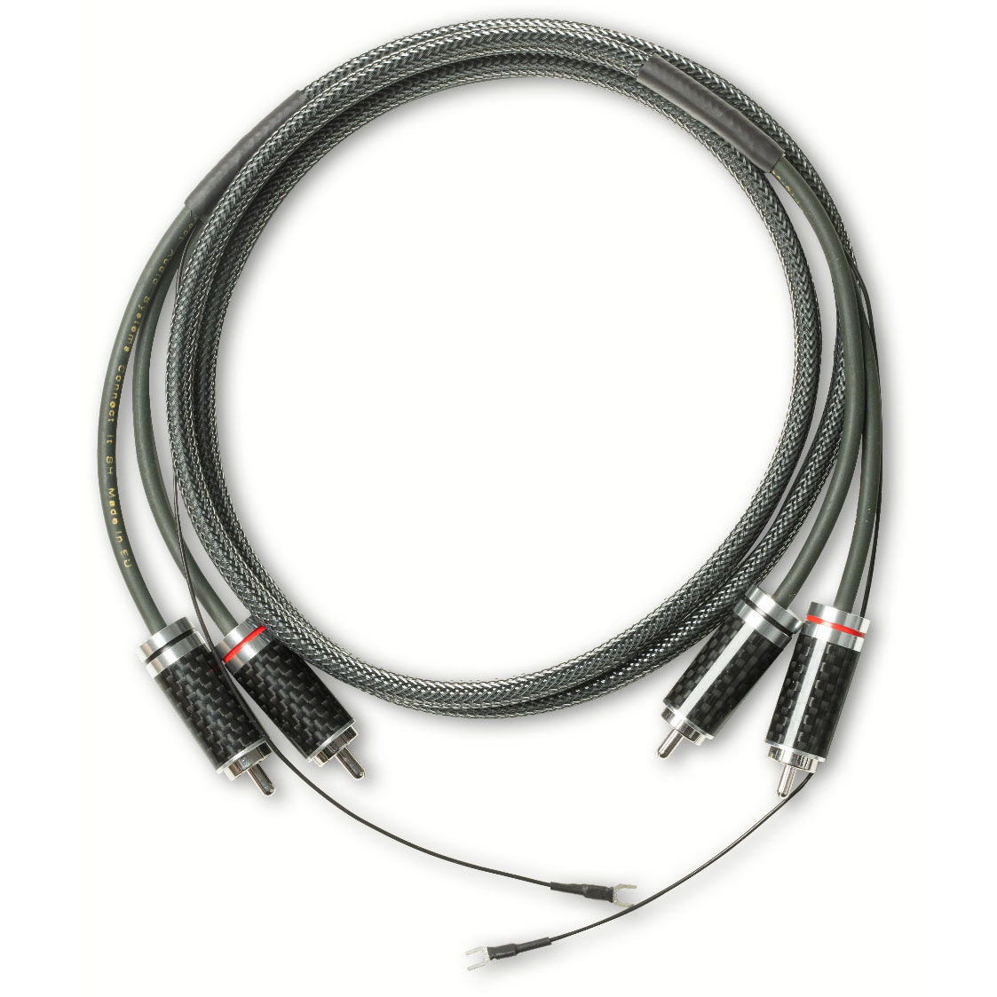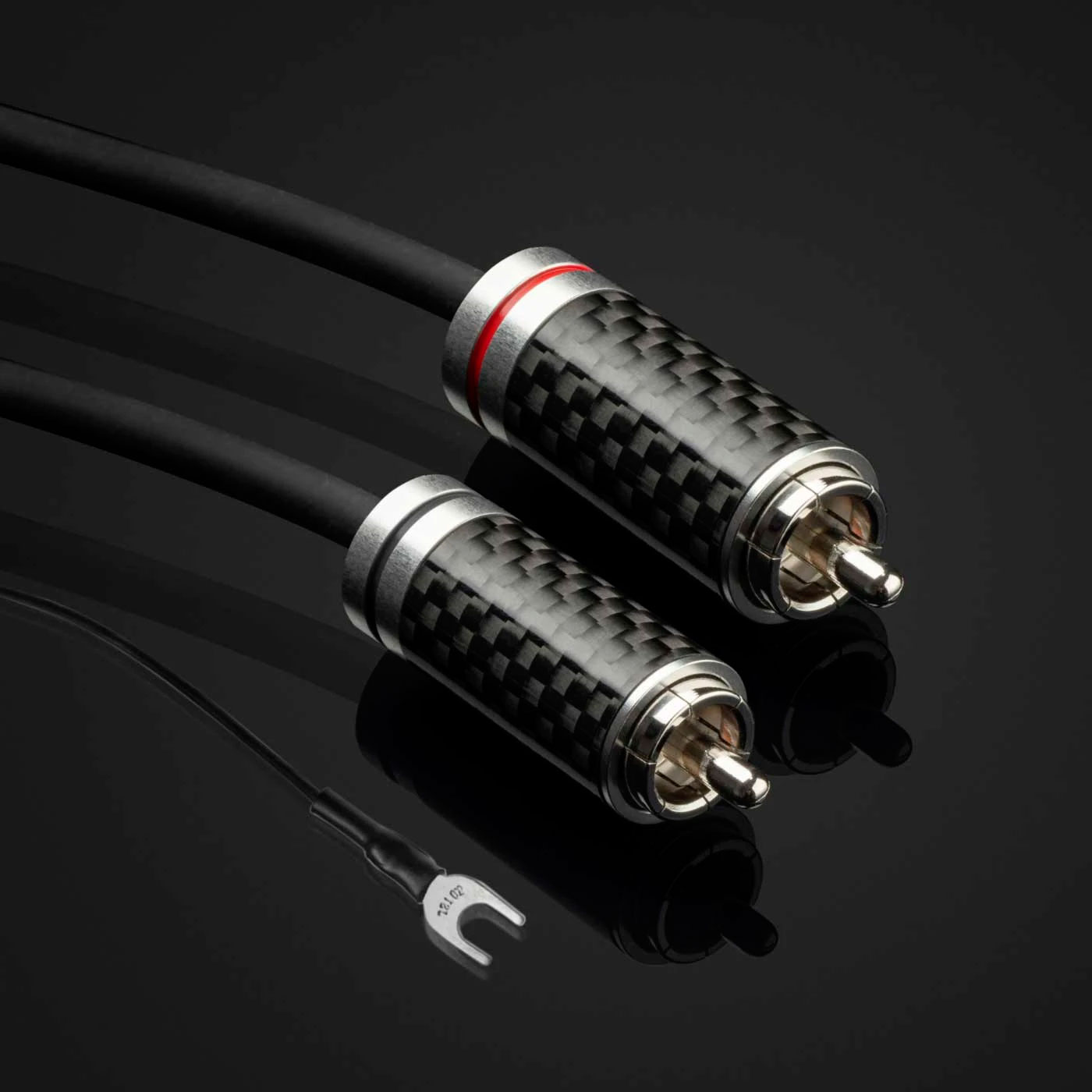 Экранирование осуществляется с помощью оплетки из меди OFC с серебрянным покрытием и проводящей оболочки из углерода. Это обеспечивает идеальную защиту сигнала, а также большую гибкость кабеля. Все разъёмы кабелей RS-Line имеют медные корпуса с родиевым покрытием и оболочкой из карбона.