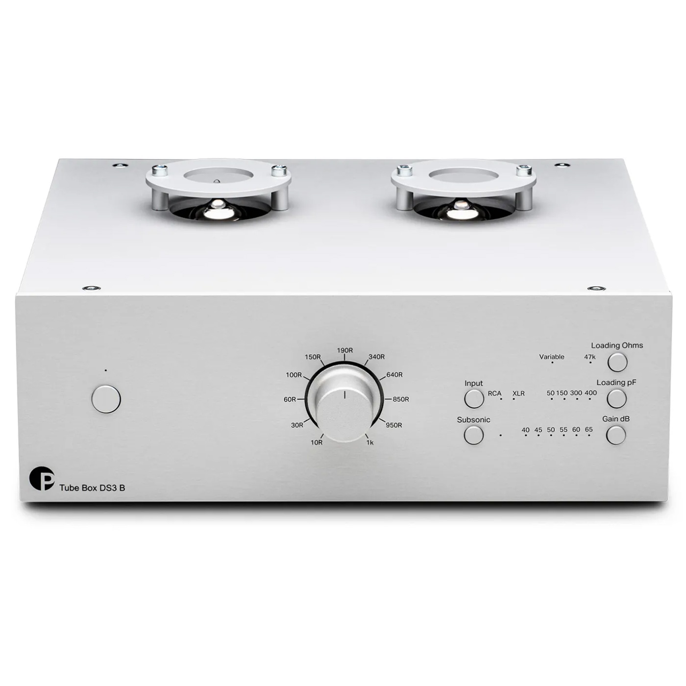 Pro-Ject Tube Box DS3 B – ламповый фонокорректор. Tube Boxes были неотъемлемой частью нашего ассортимента продукции в течение многих лет. Теперь Tube Box DS3 B добавляет сбалансированные входы и выходы к любимому ламповому усилению. Этот прецизионный ламповый фонокорректор использует выдающуюся схемотехническую технологию от Dr. Sykora и первоклассные компоненты. Вы можете подключить два проигрывателя одновременно и легко настроить все на передней панели. Настройки каждого входа сохраняются в памяти. Возможны большие диапазоны от 40 дБ до 65 дБ. Вы можете идеально согласовать его с широким спектром картриджей и интегрировать его в остальную часть вашей Hi-Fi-системы, точно согласовывая уровни громкости с другими источниками, такими как CD-плееры или потоковые устройства. Сопротивление нагрузки можно устанавливать непрерывно с помощью потенциометра, системы, изобретенной Pro-Ject Audio Systems. Это позволяет вам плавно регулировать сопротивление во время воспроизведения и немедленно оценивать влияние различных вариантов нагрузки. Это необходимо, чтобы найти правильное сопротивление нагрузки для вашего картриджа. Ни один другой производитель не реализует эту функцию таким экстремальным образом.