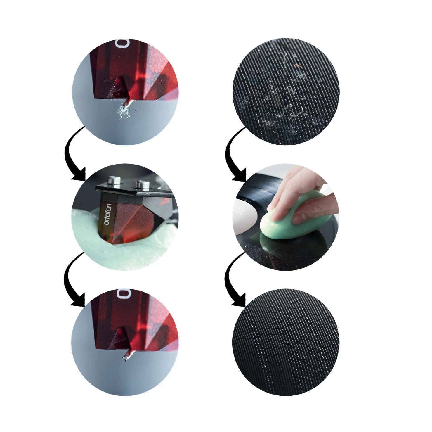 Vinyl Clean - чистящее средство, которое позволяет качественно очистить поверхность диска от различных загрязнений, очень простое в использовании. Им нужно равномерно «прокатать» всю пластинку с двух сторон (последняя должна быть расположена на чистой, гладкой и твердой поверхности). В результате все загрязнения с ее поверхности будут абсорбированы Vinyl Clean. За счет запатентованного состава средства достигается эффект сухой (химической) чистки, в результате которой на пластинке не остается влаги. Vinyl Clean подходит для очистки виниловых, но не шеллаковых пластинок. Средство можно использовать в течение восьми месяцев, а об ухудшении его впитывающих способностей подскажет изменение цвета средства.