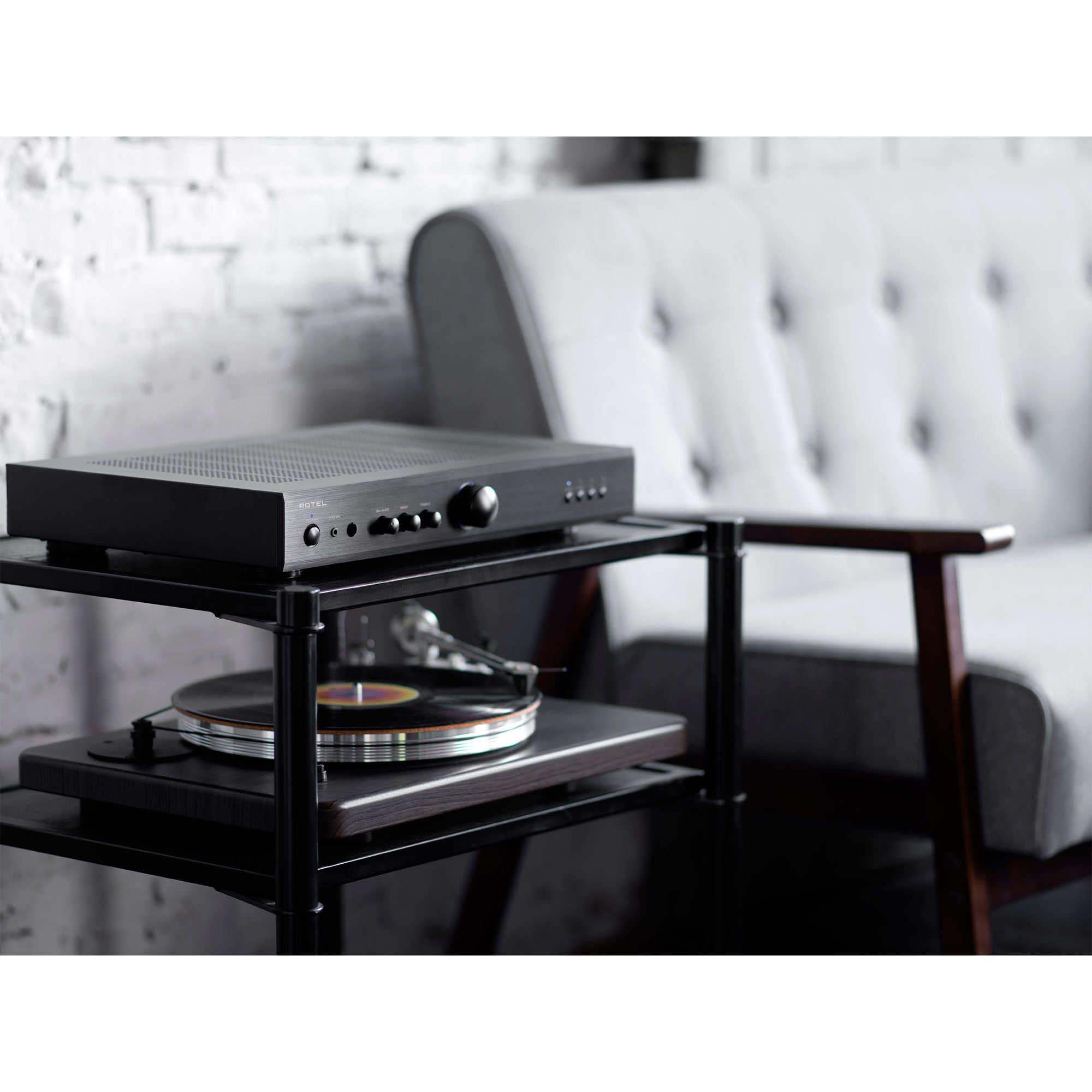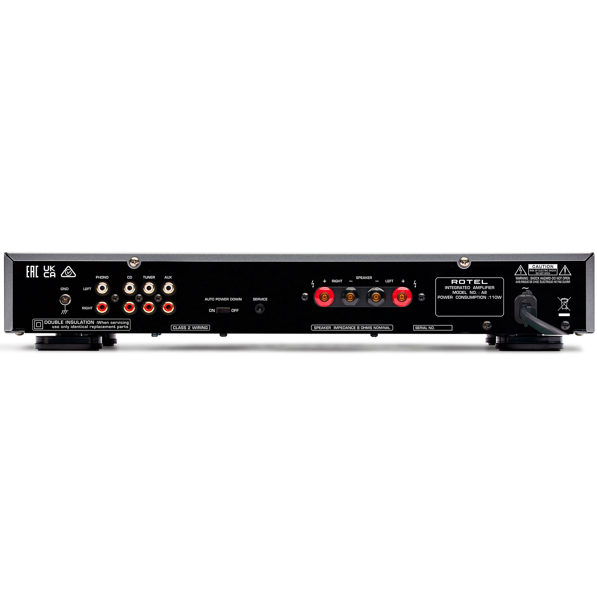 Rotel A8 построен полностью по аналоговой схеме. На его задней панели находятся RCA-гнезда трех линейных входов, а также разъемы встроенного фонокорректора для MM-звукоснимателя. Схема корректора собрана на малошумящей микросхеме и обеспечивают точную RIAA-коррекцию для правильного воспроизведения музыки с пластинок. Для подключения колонок предусмотрены надежные винтовые клеммы. Rotel A8 оснащен и выходом на наушники – соответствующее гнездо диаметром 6,3 мм находится на передней панели.