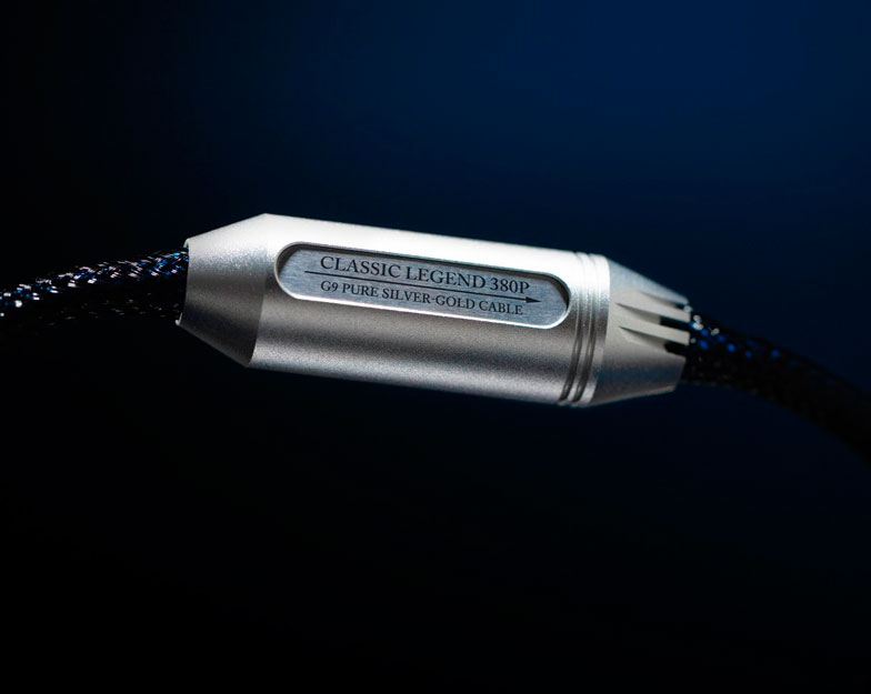 Classic Legend 380P первый силовой кабель в линейке имеет серебряно-золотые проводники G9 в скрученной коаксиальной двухжильной конфигурации с покрытием DuPont Teflon, PEEK и суперэкранированием.